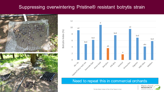 Ground Spread should be applied only after the orchard has experienced significant Botrytis pressure through to harvest, and after berry drop has occurred.
